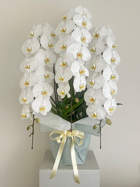 胡蝶蘭 3本立ちは、美しい花姿と高級感が魅力の贈り物に最適です。3本の立派な花柄が、贈られた方に幸せな気持ちを届けてくれます。胡蝶蘭は縁起の良い花としても知られており、新しい家庭やビジネスの開運アイテムとしても人気があります。